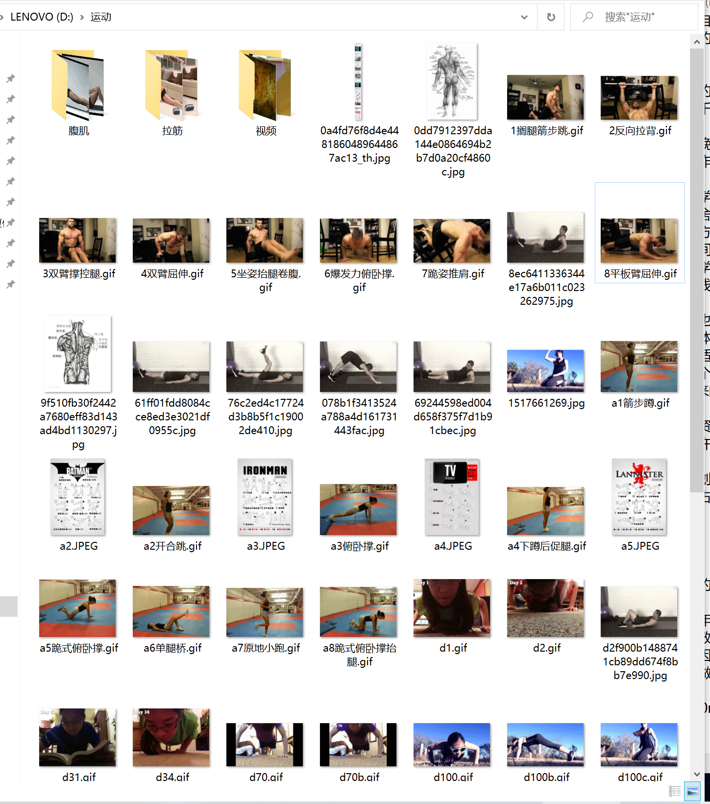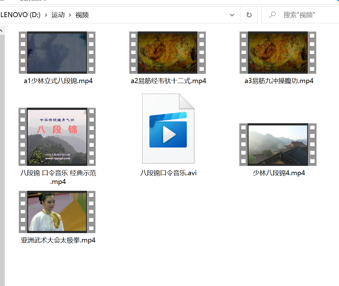 今天又翻八段锦等的视频资料(也练过一阵子,不过这个我都能忘记了),还有其他的,看了一遍,不过这类太过简单、单一,能够锻炼到的部位还是少,也许再过二十年比较适合。